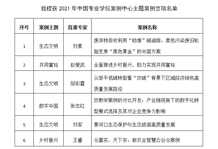 近日,教育部学位与研究生教育发展中心公布了“中国专业学位案例中心”2021年主题案例征集立项结果,山东财经大学申报的6项案例获得立项。
