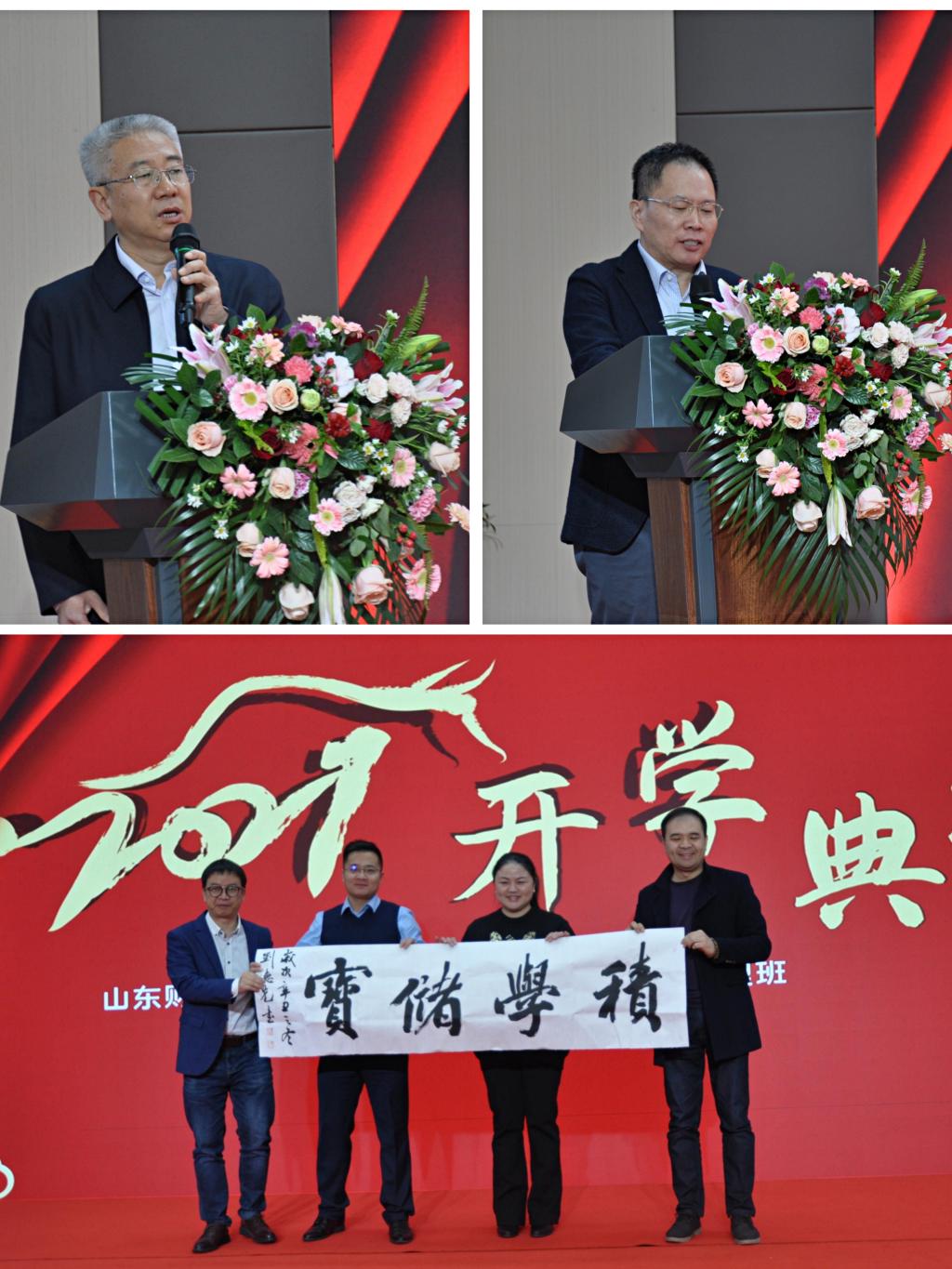 2021年12月18日上午,山东财经大学MBA青岛金融创新管理班在日照银行青岛分行报告厅举行开班典礼。副校长张新、中国人民银行青岛市中心支行副行长张朝晖校友、青岛市金融管理局副局长王振校友、致公党青岛市副主委郭振栋校友,山东财经大学校友会副会长、众地阳光集团有限公司董事长王文正校友,日照银行青岛分行党委书记、行长安佰刚校友等领导嘉宾、校友代表以及学校合作发展处、MBA学院、团委、就业指导处等相关部门负责人、青岛金融创新管理班学员参加活动。张新、王文正、安佰刚先后致辞,青岛金融创新管理班班长、青岛鑫源集团总经理辛亚琴代表学员发言,西泽学院联合创始人、院长赵健校友作主题演讲。