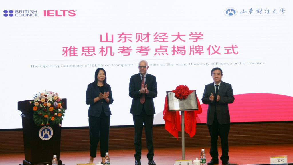 9月24日,山东财经大学雅思机考考点揭牌仪式在舜耕校区举行,山东财经大学党委书记王邵军、英国文化教育协会中国考试业务总监高飞(Nick Godfrey)为山东财经大学雅思机考考点揭牌。山东财经大学校长赵忠秀以视频方式为揭牌仪式致辞。英国文化教育协会中国考试运营总监游卓然、山东财经大学副校长张书学、陶虎出席揭牌仪式,揭牌仪式由副校长陈晓兰主持。