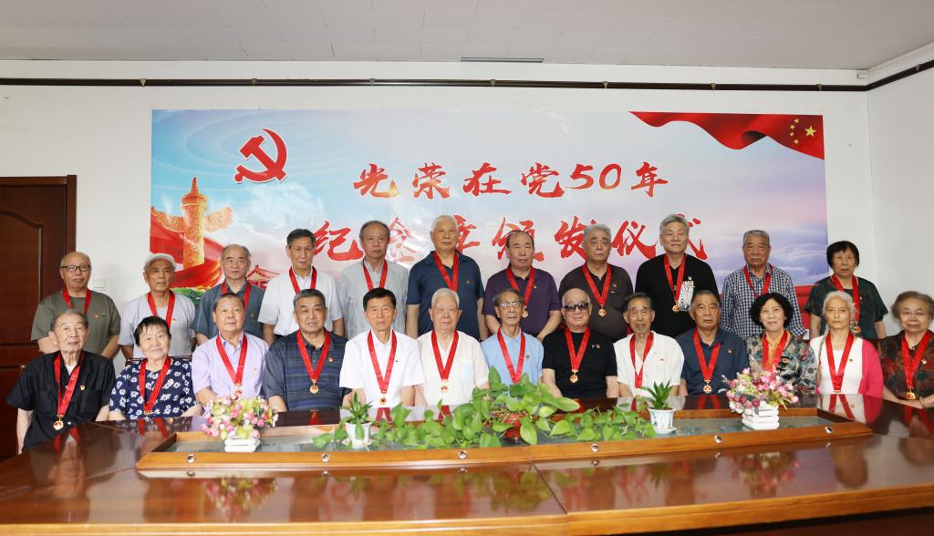 会上通报了学校“光荣在党50年”纪念章99名获得者名单。党委组织部、党委宣传部、离退休工作处负责同志参加了仪式。
