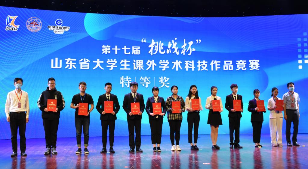 6月3日上午,第十七届“挑战杯”山东省大学生课外学术科技作品竞赛颁奖典礼在山东大学音乐厅落下帷幕。学校喜获特等奖3项,推报国赛作品6件,推报省赛作品数量、推报国赛作品数量均位列全省首位,荣获大赛优胜杯和优秀组织奖。