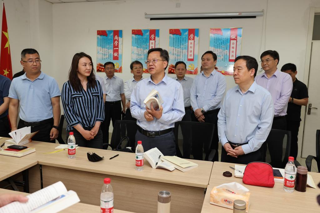 宣讲结束后,王心富参观了管理科学与工程学院智慧养老与物联网实验室,希望我校充分发挥学科和人才优势,瞄准现实需求,进一步加大科研成果转化力度。在工商管理学院,王心富听取了学院党委负责同志情况汇报,要求努力创新党史学习教育方式方法,充分调动广大党员教师、青年学生参与的积极性,在学思践悟上求实效、见成效。随后,王心富与我校中层副职干部党史学习教育专题学习班二组学员进行了现场交流,勉励大家学有所思、学有所悟、学有所得,从党史中汲取智慧和力量,学出践行“两个维护”的高度政治自觉,学出中国特色社会主义的坚定制度自信,学出服务师生群众的不渝初心使命,以优异成绩庆祝中国共产党成立100周年。