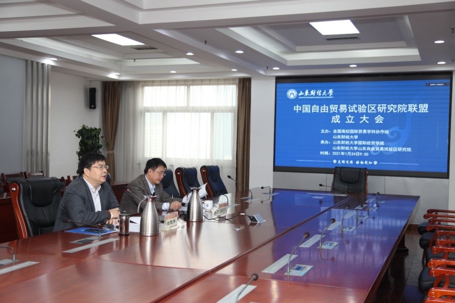 2021年1月24日上午,中国自由贸易试验区研究院联盟成立仪式在我校举行。会议由全国高校国际贸易学科协作组和山东财经大学主办,我校山东自由贸易试验区研究院承办。校长赵忠秀主持会议。受疫情影响,此次会议以线上方式进行。