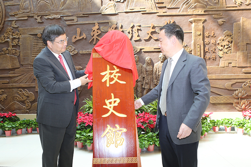 2020年9月30日,金秋送爽,丹桂飘香;佳节双至,喜庆满堂。山东财经大学校史馆开馆仪式在圣井校区文化活动中心一楼东侧大厅举行。校党委书记王邵军、校长赵忠秀为校史馆揭牌。
