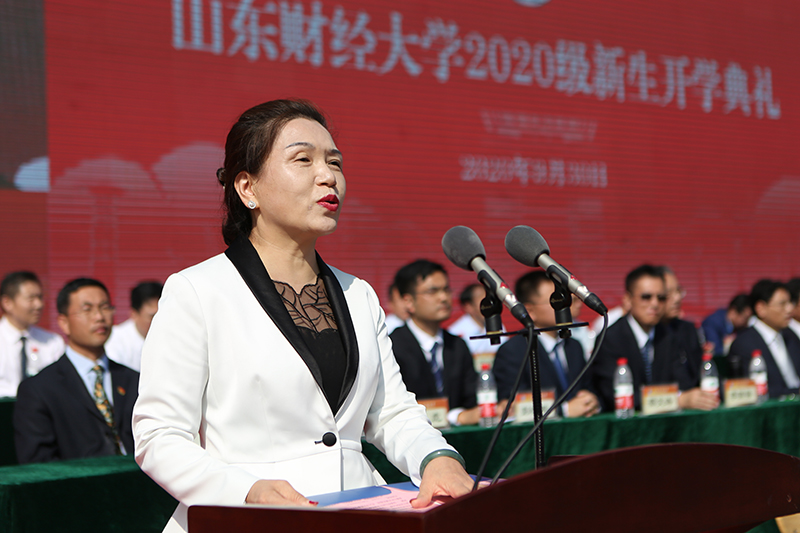 青春绽放,梦想起航;圆梦财大,再续华章。9月30日,山东财经大学2020级新生开学典礼在圣井校区田径场隆重举行。校党委书记王邵军,校长赵忠秀,党委副书记赵友春,副校长綦好东、韩作生、陈晓兰、张书学、张新,校友代表、1989级投资经济管理专业校友、招商证券山东分公司总经理李红英,教师代表、国家“有突出贡献中青年专家”、泰山学者特聘教授、第四届刘诗白经济学奖获得者、金融学院院长彭红枫等出席典礼。典礼由韩作生主持。