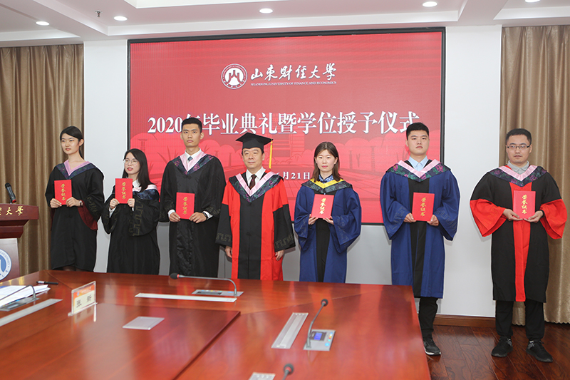 疫情挡不住毕业季美好,疫情隔不断财大学子对母校的依依惜别之情。6月21日上午,山东财经大学2020年毕业典礼暨学位授予仪式隆重举行。校党委书记王邵军,校长赵忠秀,副校长綦好东、韩作生、陈晓兰、张书学、张新以及部分职能部门负责人、本科生、硕士和博士研究生30余名毕业生代表在现场参加典礼。校党委副书记赵友春主持了典礼和仪式。