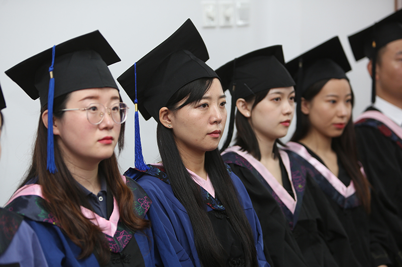 在全体起立高唱国歌之后,副校长韩作生宣读了普通本科学生毕业的决定。今年共有8466名应届本科学生完成学业,顺利毕业;977名学生获准颁发第二专业辅修证书;3名应届本科国际学生毕业,颁发本科毕业证书。副校长綦好东宣读了关于同意2020届博士、硕士研究生毕业的决定。今年共有1042位研究生毕业,其中全日制博士研究生毕业生共18人、全日制学术学位硕士研究生毕业生共372人、全日制专业学位硕士研究生毕业生共412人、非全日制专业学位硕士研究生毕业生共233人、来华留学硕士研究生毕业生共7人。副校长张新宣读了表彰优秀毕业生的决定。按照评选条件和程序,学校决定对刘玉鑫、刁瑞敏等993名优秀毕业生予以表彰。