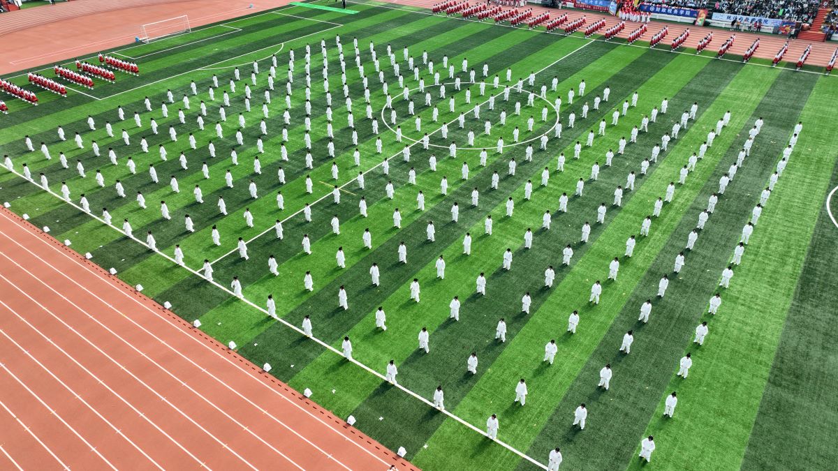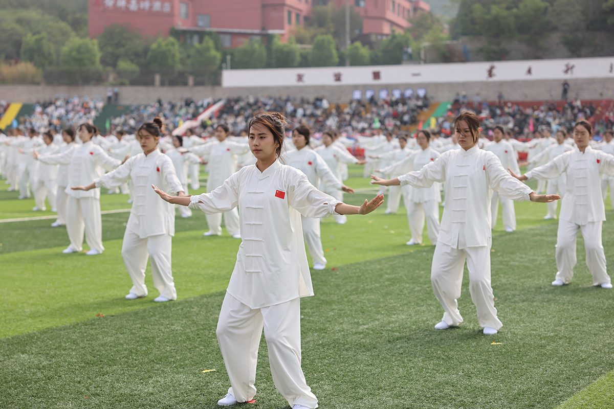 开幕式上,八段锦、团体操以及抖空竹、滚铁环、武术、舞龙舞狮等民俗体育表演精彩纷呈。八段锦神形合一、气韵自然;团体操气势恢宏,青春勃发;武术、舞龙舞狮等民俗体育表演灵动威武,充满力量,获得了现场观众阵阵喝彩。