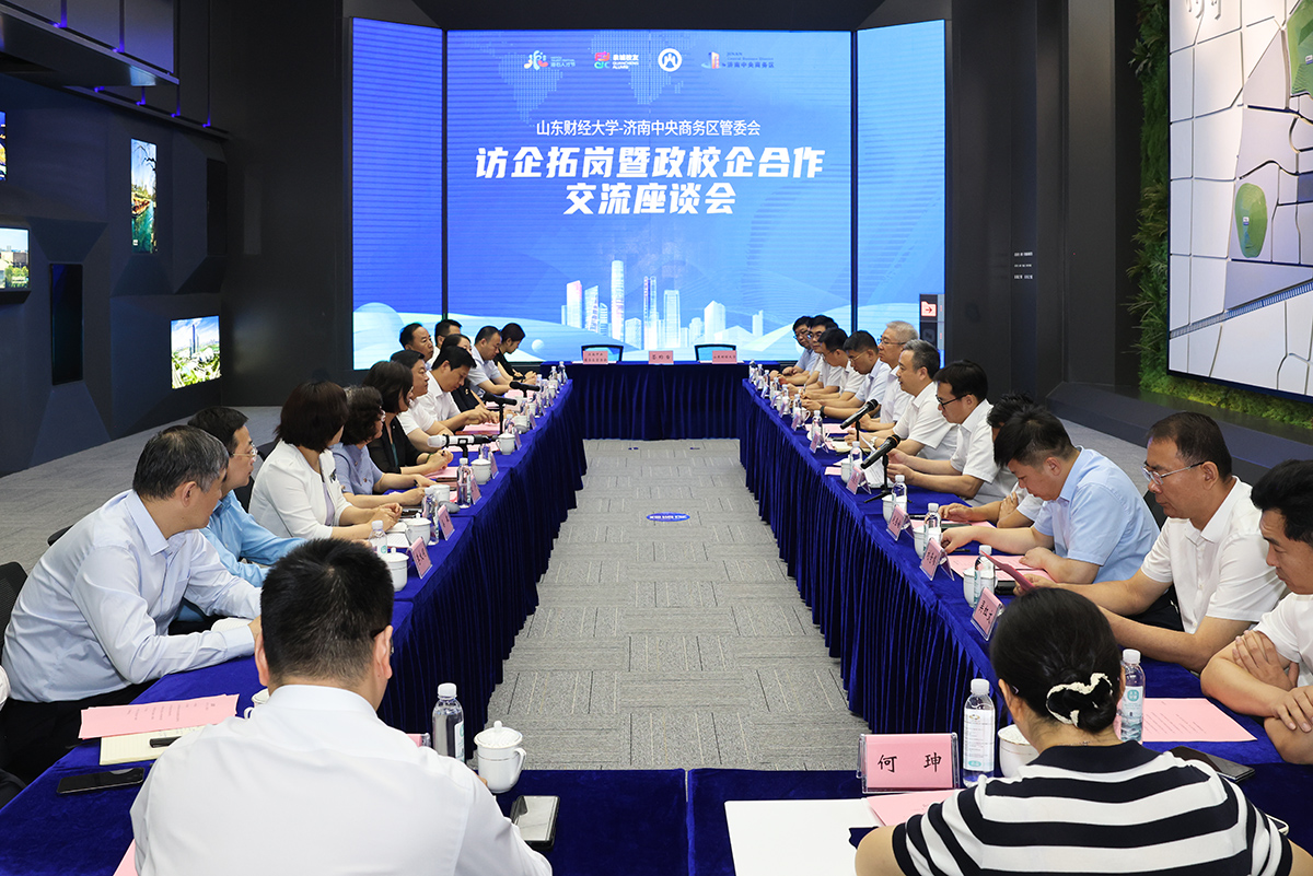 7月12日上午,学校党委书记查玉喜、校长洪俊杰带队到济南中央商务区开展访企拓岗和政校企合作交流活动。历下区委书记、济南中央商务区党工委书记杨传军,济南中央商务区党工委副书记、管委会主任王海清,济南市投资促进局副局长贺旭艳,历下区委常委、组织部部长、统战部部长朱英涛,我校副校长张新、赵奎皓、刘旻航出席活动。济南中央商务区管委会副主任李莎主持座谈交流。