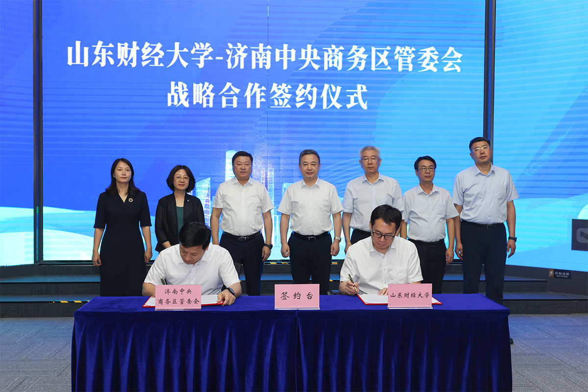 活动现场,我校校长洪俊杰与济南中央商务区管委会主任王海清代表双方签署全面战略合作协议。历下区人社局局长解伟介绍了人才需求及人才扶持政策,历下区财政局局长刘相国介绍了历下区金融人才报告。