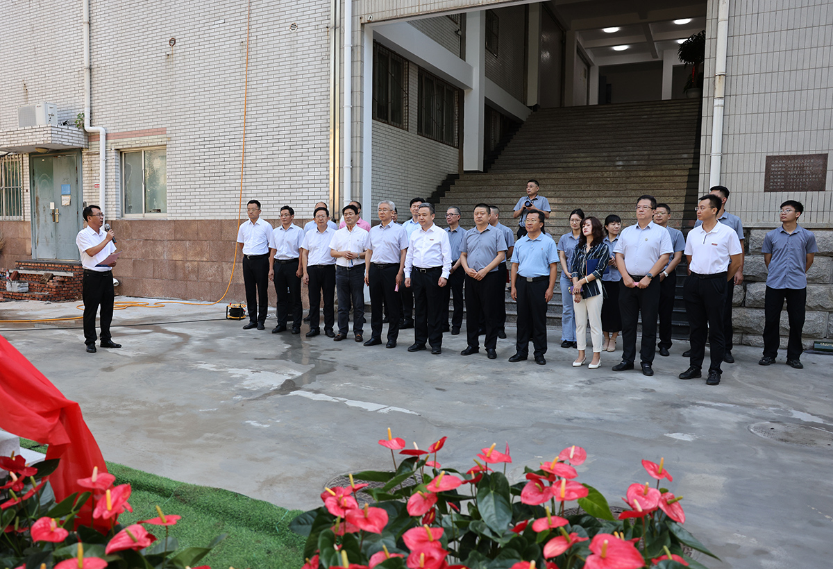 查玉喜与王汉领为修缮一新的燕山校区礼堂的重新启用揭幕,并向王汉领颁发了捐建纪念杯,对他捐资学校建设的善行义举表示感谢,并强调这是校友回报母校、献给即将到来的第40个教师节的一份厚礼。