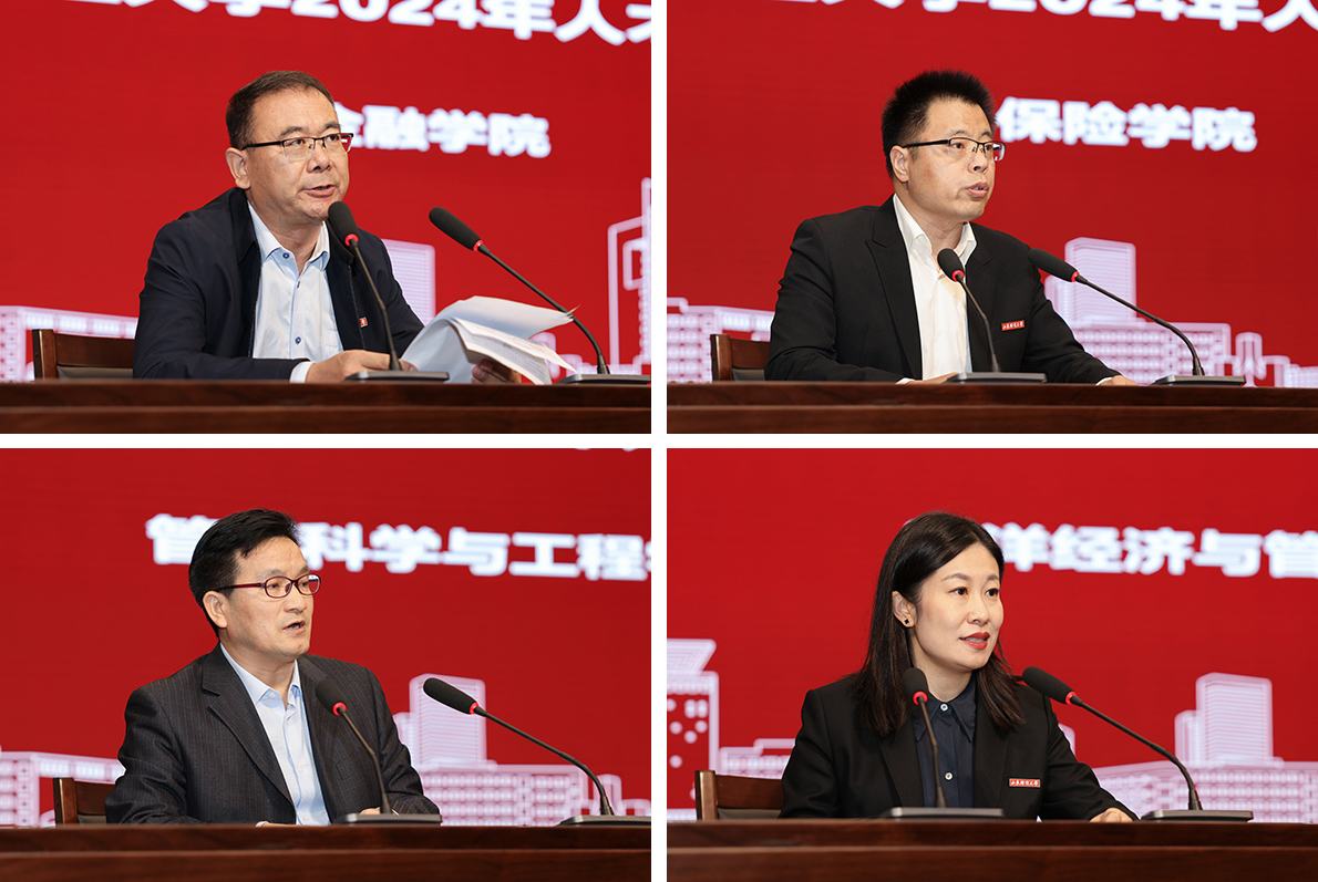 金融学院党委书记吴红文、保险学院院长于文广、管理科学与工程学院院长刘位龙、海洋经济与管理研究院黄冲介绍了本单位在人才队伍建设、人才政策落实、人才引进培育和人才服务保障等方面的经验做法。