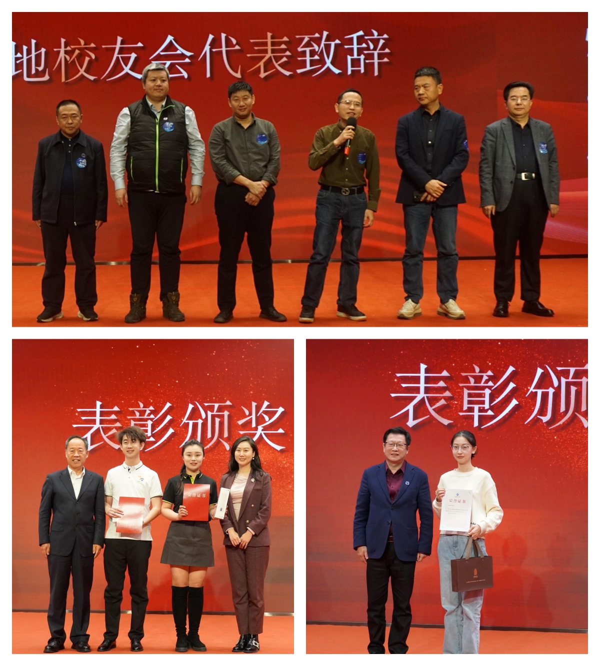 查玉喜、张新、孙海华、宋宁等分别为获得“年度优秀校友”“年会小蜜蜂奖”“优秀新生”“年会最佳才艺奖”的校友颁奖。