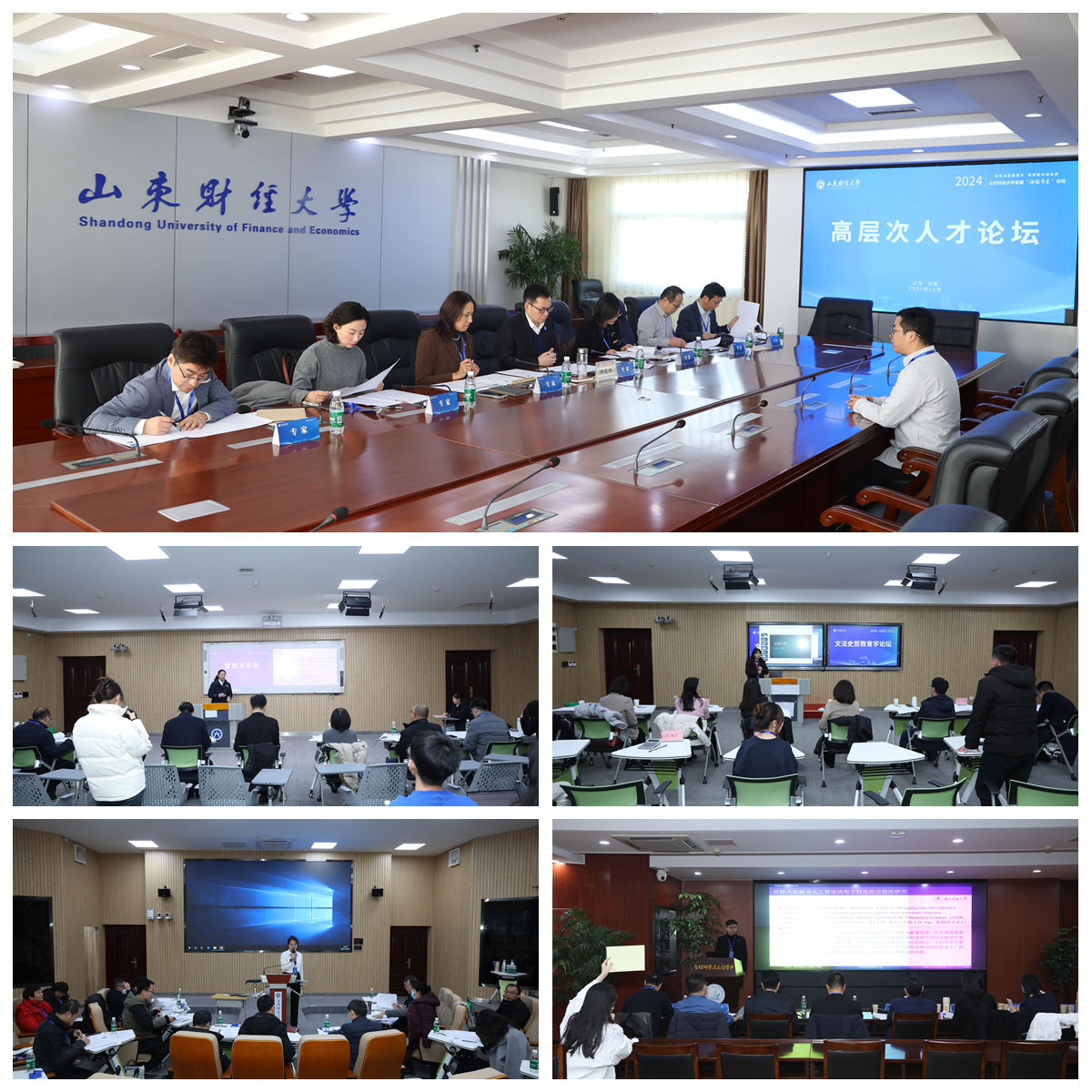 首届“海岱学者”论坛的主题是“岱青海蓝聚英才,筑梦财大创未来”,围绕财经之道深入交流探讨,促进学科发展与创新,搭建起学校与海内外英才的交流平台。论坛由省教育厅、省人力资源社会保障厅指导,山东财经大学主办,山东人才集团协办。围绕急需紧缺高层次人才,学校会同山东人才集团从海量人才信息精准筛选对接120余位海内外优秀学者应邀参会,其中符合预聘制副教授及以上岗位28人,高层次人才团队3个。学校相关部门负责人,各学院党委书记、院长、分管副院长、人才服务专员、人事工作秘书,教授代表、新入职博士代表等参加了论坛。