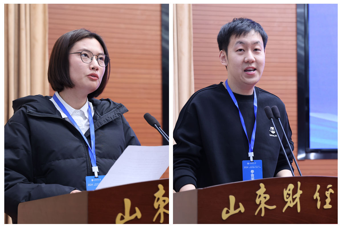 国家级青年人才、学校统计与数学学院副院长李娜教授,山东省泰山学者青年专家、学校保险学院副院长于新亮教授分别回顾了入职以来的学习工作经历,分享了发展成长、努力奋进的感悟,期待与参会学者一起挺膺担当,自觉承担“教育强国”的时代重任。