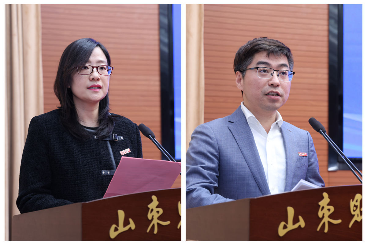 新西兰奥塔哥大学计算机学院庞颖博士、山东大学经济学院李林巍博士作为参会学者代表发言。庞颖介绍了协同与联邦学习、类别不平衡学习等机器学习领域的前沿问题和研究成果,并表示她作为“水生水长”济南人,回到家乡,加入山财大,不仅是回应国家召唤的决心,更源于山东财大对人才的尊重与支持。李林巍表达了对母校本科阶段教育培养的感恩,是“克明峻德,格物致知”的校训精神激励他前行,他汇报了中国地方政府债务研究领域的科研成果,希望回到母校干事创业。