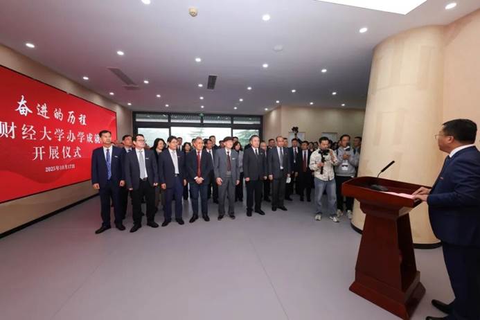 据悉,根据学校的工作部署,办学成就展筹备工作自去年7月启动,专门成立了工作领导小组以及工作专班,分工负责文稿内容撰写、版式设计等,合力推进布展。成就展总面积近700平方米,共分为“筚路蓝缕 以启山林”“一脉同行 蓬勃发展”“相与为一 踵事增华”“砥砺奋进 未来可期”等四个篇章,集中展示了照片400余张,图表50余幅,报刊、论坛文章报道40篇,多媒体互动10余处,历史文件、证书、资料、书法、文创产品等实物100余件,较为全面地展示了学校建校至今创建、变迁、合并、融合的发展历程和在学科建设、人才培养、科学研究、社会服务、国际交流合作、文化传承创新等方面取得的办学成就,旨在激发全校师生立足新起点、再创新辉煌的信心和干劲,续写全面建设新时代高水平财经大学新篇章。