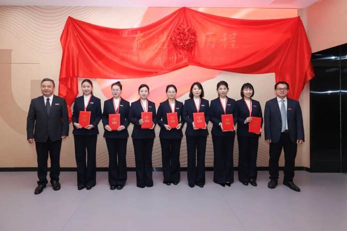 随后,查玉喜、洪俊杰为李珊珊、张沫等人颁发了办学成就展讲解员聘书。