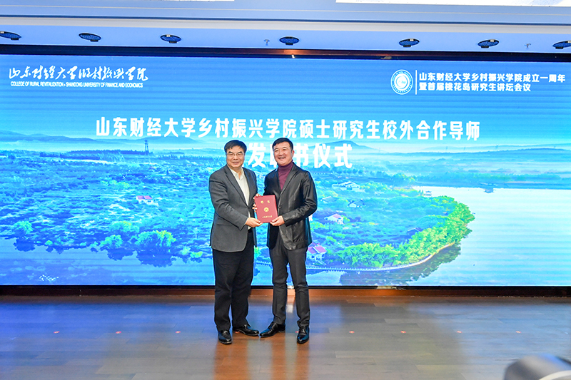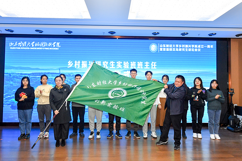 赵忠秀为乡村振兴学院硕士研究生校外导师周静、赵衍峰、李大鹏颁发聘书;陈晓兰为乡村振兴研究生实验班班主任董方军授旗;国承彦向乡村振兴学院学术院长王蔚授牌孔子学堂。乡村振兴学院院长董方军致欢迎辞并汇报了学院一年来的工作情况与下一步打算。研究生院院长毕秀玲介绍了首期乡村振兴研究生实验班和桃花岛研究生讲坛相关情况。