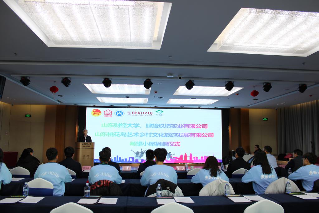 11月24日下午,我校与沂源县、肆拾玖坊实业有限公司、山东桃花岛艺术乡村文化旅游发展有限公司在我校乡村振兴学院举行了“希望小屋”捐建仪式。