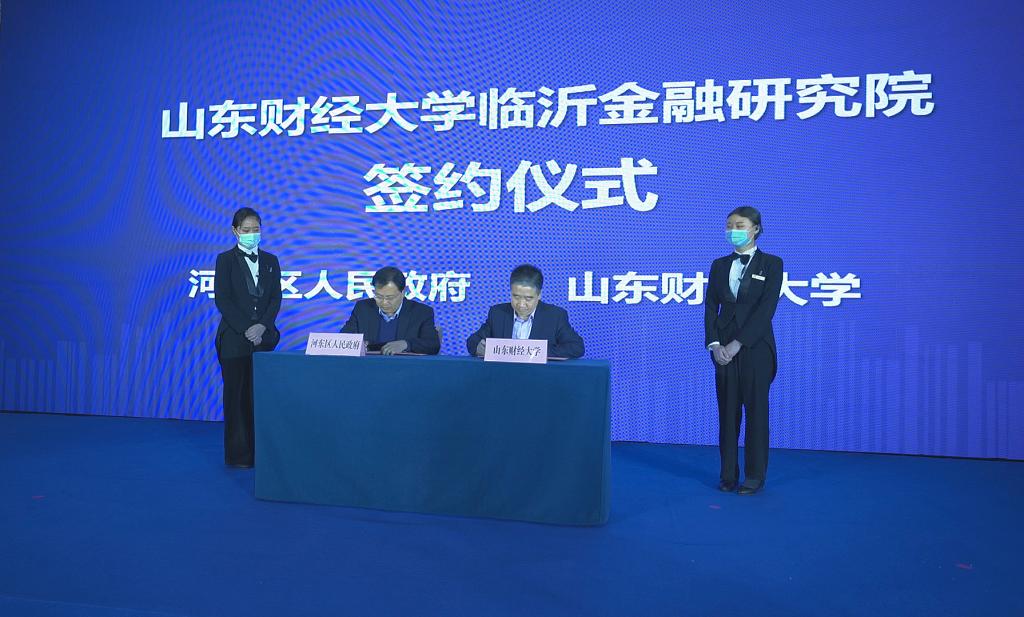 2020年12月19日,山东财经大学临沂金融研究院揭牌仪式在临沂市举行。学校党委书记王邵军,临沂市委常委、常务副市长侯晓滨,山东省地方金融监督管理局规划处处长刘晓东,临沂市河东区区委书记隽新阳,区委副书记、区长姚运明出席活动。揭牌仪式由隽新阳主持。