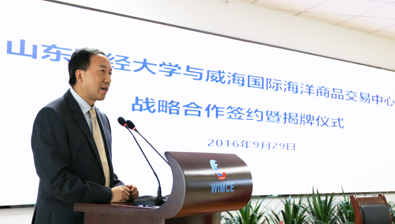 2016年9月29日,学校与威海国际海洋商品交易中心战略合作签约暨产学研基地揭牌仪式在荣成市威海国际海洋商品交易中心交易大厅举行。校长卓志与威海国际海洋商品交易中心董事长时英勇签署战略合作协议,与荣成市副市长王刚共同为产学研基地揭牌。活动前,卓志与荣成市委书记江山进行了交流,荣成市经信局、金融办和学校校长办公室、科研处、金融学院相关负责人参加活动。