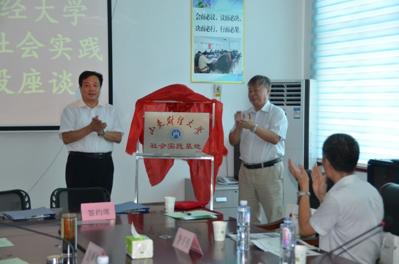 济宁市林业局党组成员、副局长徐西胜主持会议并介绍了济宁市林业局及济宁林业改革发展情况,任城区政府副区长苏士革致贺辞。孙玉太在听取了济宁林业改革发展情况后,结合孙玉太、牟雷一行关于李营苗木大市场、苗木大超市和中国法桐研究院的实地调研结果,对济宁林业的发展给予肯定,并介绍了山东财经大学和大学生社会实践基地相关情况。副院长牟雷宣读了山东财经大学社会实践基地共建协议书,孙玉太、程福华分别代表学院和济宁市林业局签订协议书,并为基地揭牌。