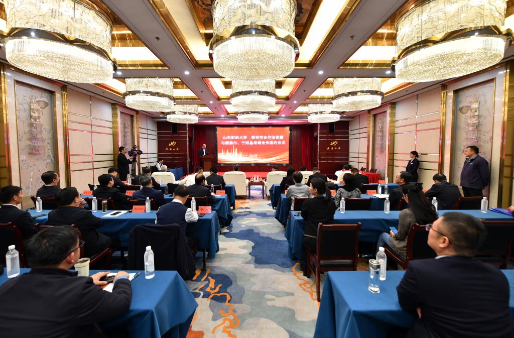 泰安市委政研室、发改委、教育局、科技局、财政局、人社局、商务局、泰安银行主要负责同志,新泰市、宁阳县相关负责同志,学校党委(校长)办公室、科研处、合作发展处(校友工作办公室)、中国经济研究院相关负责同志参加活动。