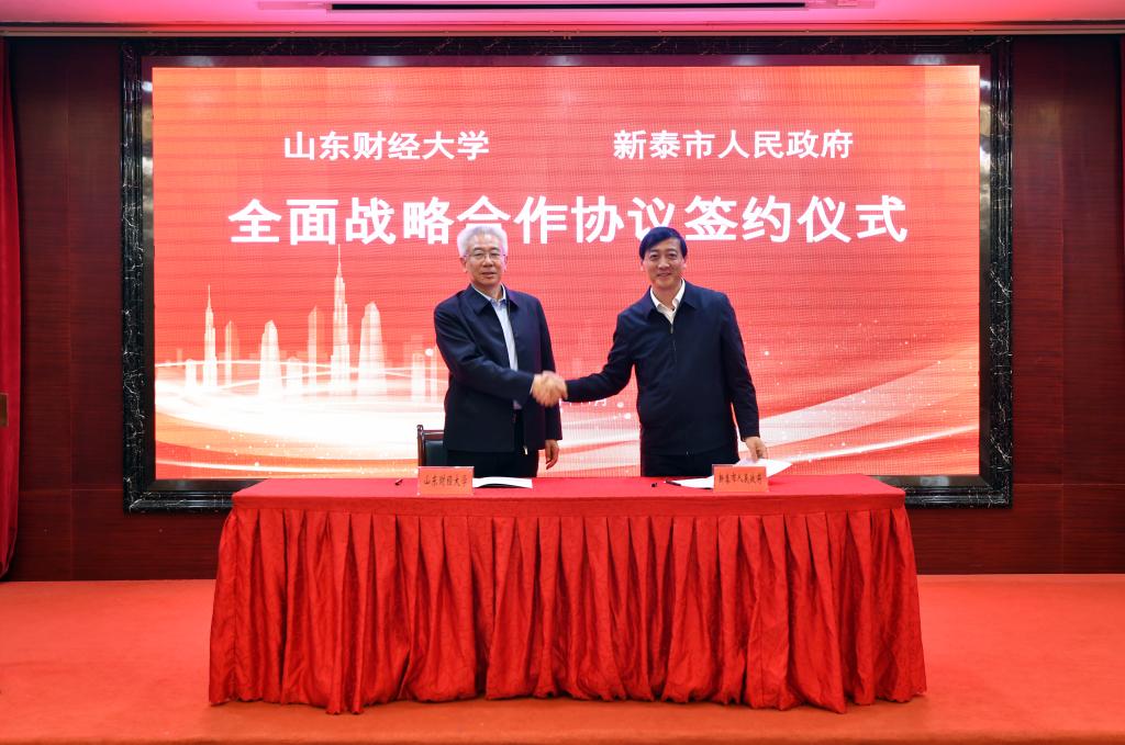 杨洪涛代表泰安市委市政府对查玉喜、洪俊杰一行的到来表示热烈欢迎,向山东财经大学对泰安发展的关心和支持表示感谢。他介绍了近年来泰安经济发展情况,以及推进校地合作、科技创新、人才培养等取得的成果。他表示,山东财经大学秉持“立德树人、经世济民”的办学宗旨,围绕全国一流财经特色名校建设,培养了一大批德才兼备的高素质专业人才,为经济建设和社会发展做出了重要贡献。此次与新泰市、宁阳县签订合作协议是校地双方的强强联合,是激活高校智库人才优势与地方实践优势的有力举措,必将为泰安高质量发展注入强劲动力。泰安市委市政府非常珍视与山东财经大学携手合作的机会,将对双方共同关注的领域、有合作意向的项目、有转化前景和应用场景的成果,密切关注、大力支持、全力配合,提供最好服务,创造最优环境,推进双方合作结出丰硕成果。希望双方以此次签约为契机,进一步强化务实合作,切实推动山东财经大学科研、技术、人才等优势与泰安市区位、资源、产业优势的全面对接。希望新泰市、宁阳县认真履行协议内容,紧紧围绕合作所需,高标准落实、高效率推进,全力保障各项工作携手共进,合作共赢。
