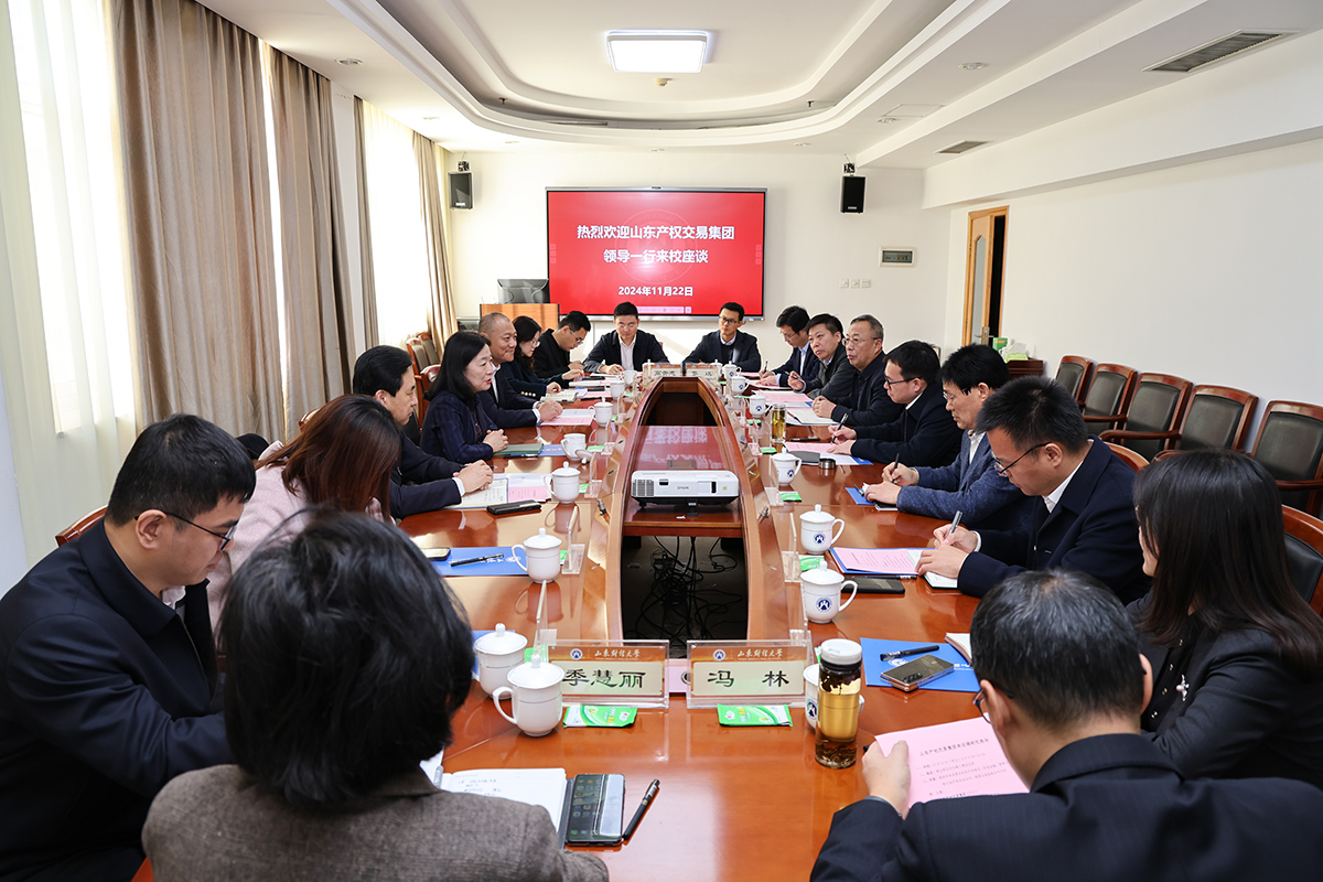 11月22日上午,山东产权交易集团党委书记、董事长张莉一行来我校调研交流。校长洪俊杰会见客人并进行会谈。