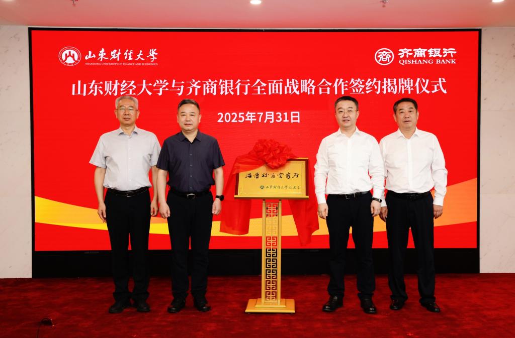 7月31日上午,山东财经大学与齐商银行战略合作协议签约仪式在齐商银行总部淄博举行。校党委书记查玉喜、副校长张新,齐商银行董事长李大鹏、行长王涛,我校淄博校友组织负责人于道文出席签约仪式。