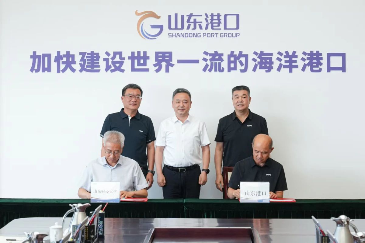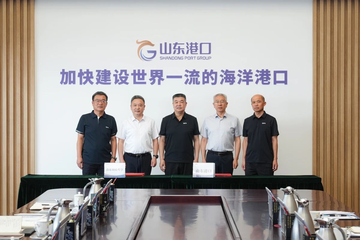 8月4日,山东财经大学与山东港口集团战略合作协议签约仪式在山东港口集团总部大厦举行。山东港口集团党委书记、董事长霍高原,党委副书记刘中国,副总经理孙正甫,我校党委书记查玉喜,副校长张新出席活动。