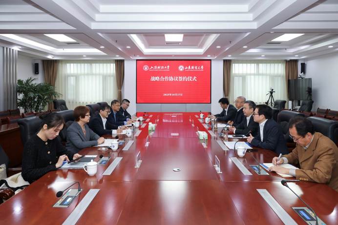 10月17日,山东财经大学与上海财经大学战略合作协议签约仪式在燕山校区举行。上海财经大学校长刘元春、副校长李增泉,山东财经大学党委书记查玉喜、校长洪俊杰、副校长张新出席签约仪式。会议由洪俊杰主持。
