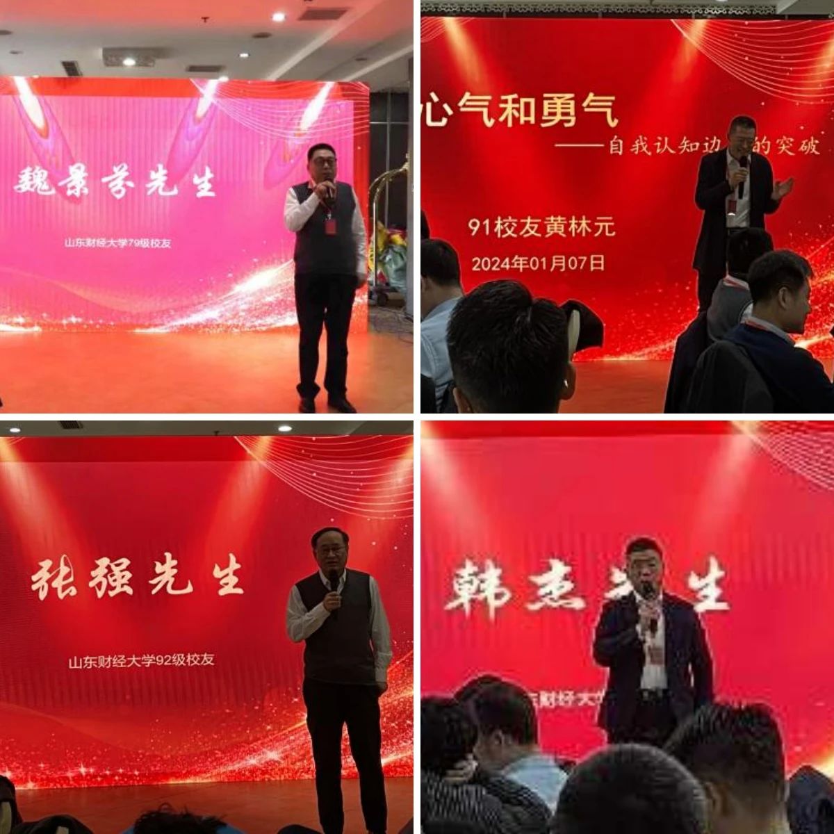 2024年1月7日,山东财经大学天津校友年会(2023)在天津海景花园酒店举行,时隔三年再聚首,展望未来更辉煌。活动邀请了学校校友工作办公室副主任邵伟然、会计学院党委书记邵文涛、北京校友代表、天津市山东商会、各兄弟高校天津校友代表,与天津校友代表共近百人参加活动,大家共聚渤海之滨,畅叙情谊。