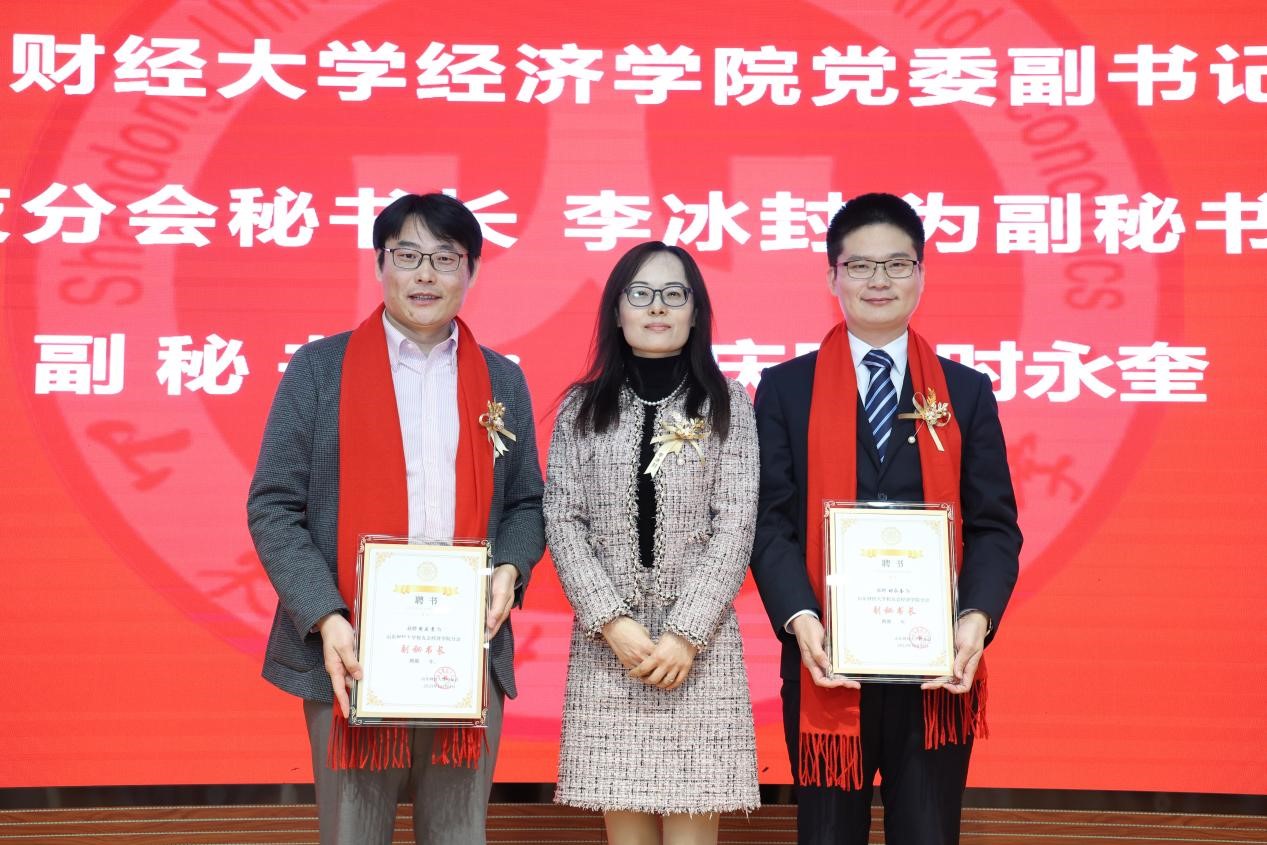 校友会秘书处相关负责人为分会其他负责人颁发聘书。经济学院相关负责人为副秘书长颁发聘书。