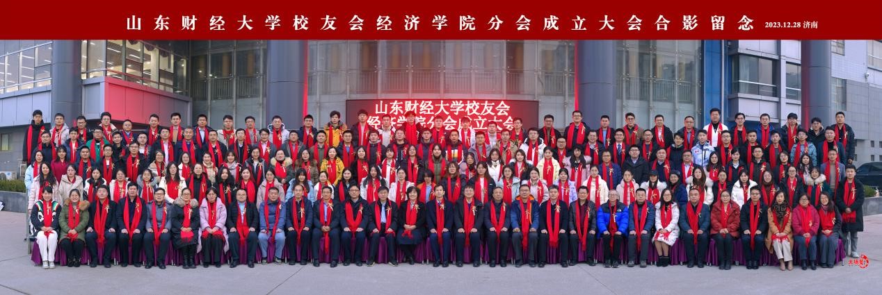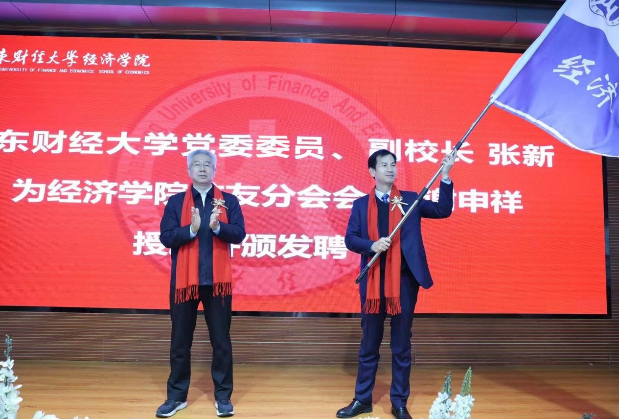 12月28日,山东财经大学校友会经济学院分会成立大会在舜耕校区举办。副校长张新受邀为经济学院校友分会授旗并致辞。