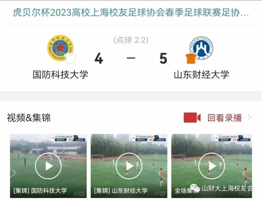 2023年3月,山东财经大学上海校友足球队首次报名参加“虎贝尔杯”高校上海校友足球协会春季联赛。经过两个半月的激烈角逐,5月20日,山东财经大学最终以5:4战胜国防科技大学,夺得冠军!