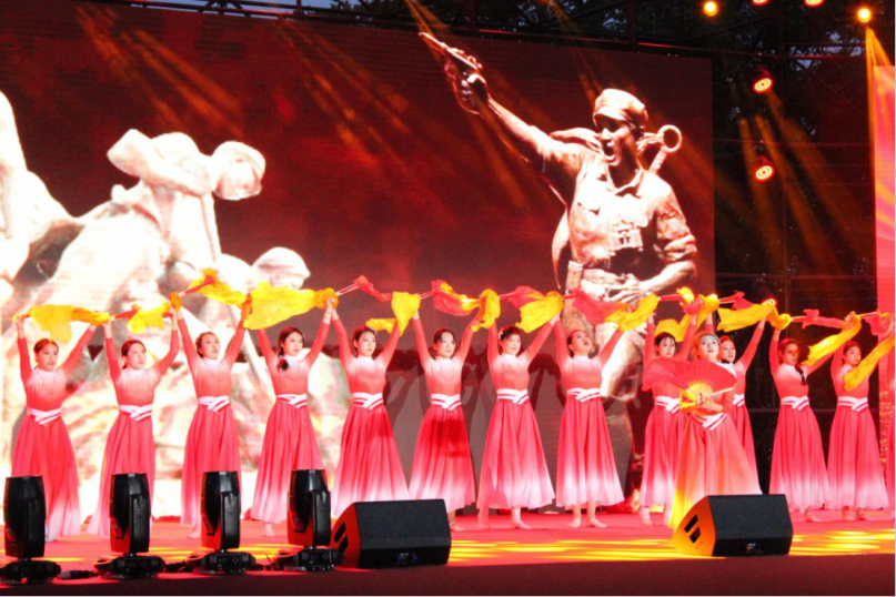 星星之火,可以燎原。舞蹈表演《星星之火》以优美的舞姿勾勒出中国近代的星火燎原,挺起民族脊梁承载中国共产党千年不变的信仰;舞台剧《国歌》借田汉与聂耳创作义勇军进行曲的过程,道尽了在国家生死存亡之际,人民的革命热情和战斗意志,道尽了在和平发展年代,人们的励精图治和勇往直前,时光易变,不变的是人们对梦想的追逐和对国家的热爱,台上同学们激情投入,台下观众热泪盈眶;研究生们带来的歌曲《追寻》,浑厚的声音中蕴含着磅礴力量。
