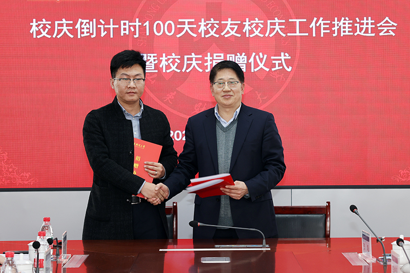 2022年2月28日,我校校庆倒计时100天校友工作推进会暨校庆捐赠仪式在燕山校区举行。校党委书记王邵军、副校长张书学、张新和捐赠嘉宾、校友代表,党委校长办公室、团委、基建处、主校区建设办公室、合作发展处、校友工作办公室等部门主要负责人,各学院校友工作分管领导、负责老师等参加活动。副校长张新主持会议。