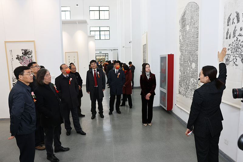随后,参加仪式的领导和嘉宾等信步走进美术馆内,一起欣赏艺术佳作。