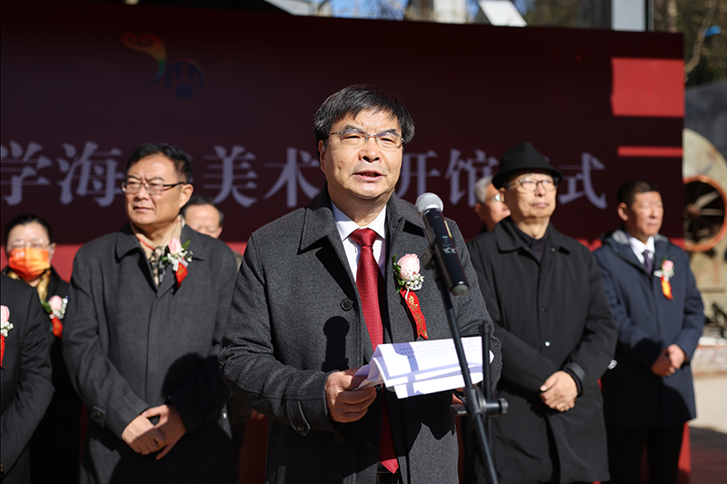 赵忠秀在致辞中对海岱美术馆的隆重开馆表示热烈祝贺。他指出,海岱美术馆的建成开馆,是贯彻落实党中央和习近平总书记立德树人要求、推动“德智体美劳”五育并举的新举措,是学校美育工作迈出的新步伐。学校将认真贯彻落实《关于全面加强和改进新时代学校美育工作的意见》,把美育纳入人才培养全过程,不断提高学生审美情趣和人文素养,激发创新创造活力,培养德智体美劳全面发展的社会主义建设者和接班人。希望海岱美术馆展示新形象,成为学校文化的新亮点、艺术的新名片;凸显新功能,提高师生审美情趣、升华审美修养、厚植审美情怀;做出新贡献,以实际行动促进学校文化大发展大繁荣,为建校70周年献礼!