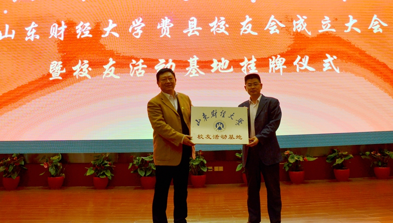 2016年10月23日,山东财经大学费县校友会成立大会暨校友活动基地挂牌仪式在费县大田庄国际度假酒店会议厅隆重举行,40余名校友参加会议。校友工作办公室主任、校友总会秘书长耿金波,山东金融发展研究院院长宿玉海,原中国银行临沂分行行长、原山东经济学院临沂校友会会长、66届校友李成连,原临沂市委副书记孙培群,费县大田庄乡党委书记张晓华,山东财经大学MBA临沂校友会会长翟士龙,山东东方集团顾问徐士东、费县公司总经理程新、大田庄国际度假酒店总经理侯传云等到会祝贺。