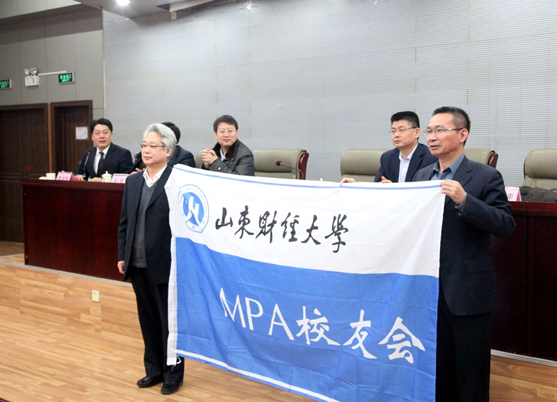 2015年1月24日上午,山东财经大学MPA校友会举行成立大会,来自省内外的150多名校友代表参加。副校长、校友总会副会长胡文波出席大会并为MPA校友会授旗。