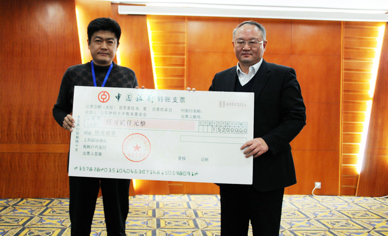 高涛在捐赠仪式上表示,希望财大人象泰山玉石一样,要有泰山精神,心怀天下,磅礴大气,坚忍不拔,风骨随身,精粹辈出,独树一帜,尽写风彩。