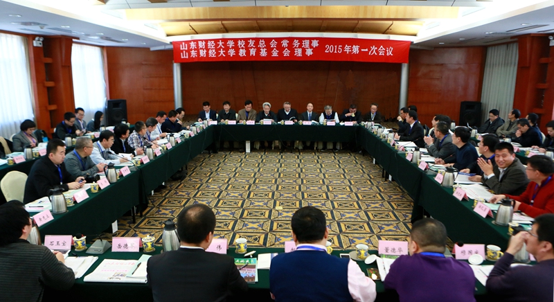 2015年1月17日,山东财经大学校友总会常务理事暨教育基金会理事2015年第一次会议在舜耕校区举行。学校党委书记书记刘兴云、校长卓志、副校长胡文波、校友总会常务理事、教育基金会理事60余人及校长办公室、教务处、学生处、就业指导处、团委、校报等职能部门负责人出席会议。会议由胡文波主持。