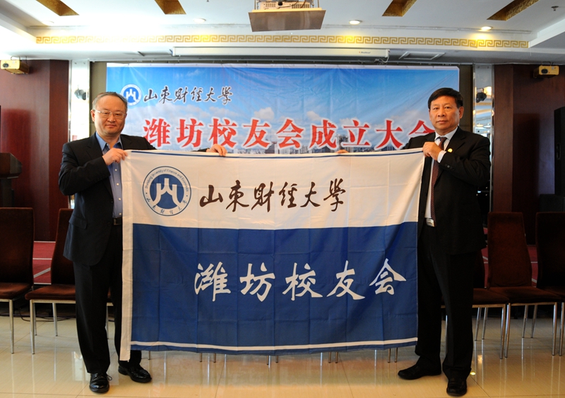 2014年11月2日,山东财经大学潍坊校友会成立大会在潍坊君尚假日酒店举行,学校党委书记、校长、校友总会会长刘兴云出席大会并为潍坊校友会授旗。党委办公室、校友工作办公室负责人及青岛、河北校友会代表等到会祝贺。来自潍坊市12个县市区的100余名校友代表参加了大会。上海、云南、甘肃、广西、浙江、宁夏、四川、湖南、东营、淄博校友会及北京、天津、江苏、威海、日照校友会筹备组发贺电祝贺。会议由常务副会长辛立国主持。