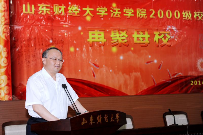2014年7月12日,法学院2000级校友再聚母校,党委书记、校长刘兴云,校友办、法学院有关负责人,法学院老领导及20多名老师与2000级4个本科班和4个专科班的近200名学生在燕山校区图书馆一号报告厅欢聚一堂。