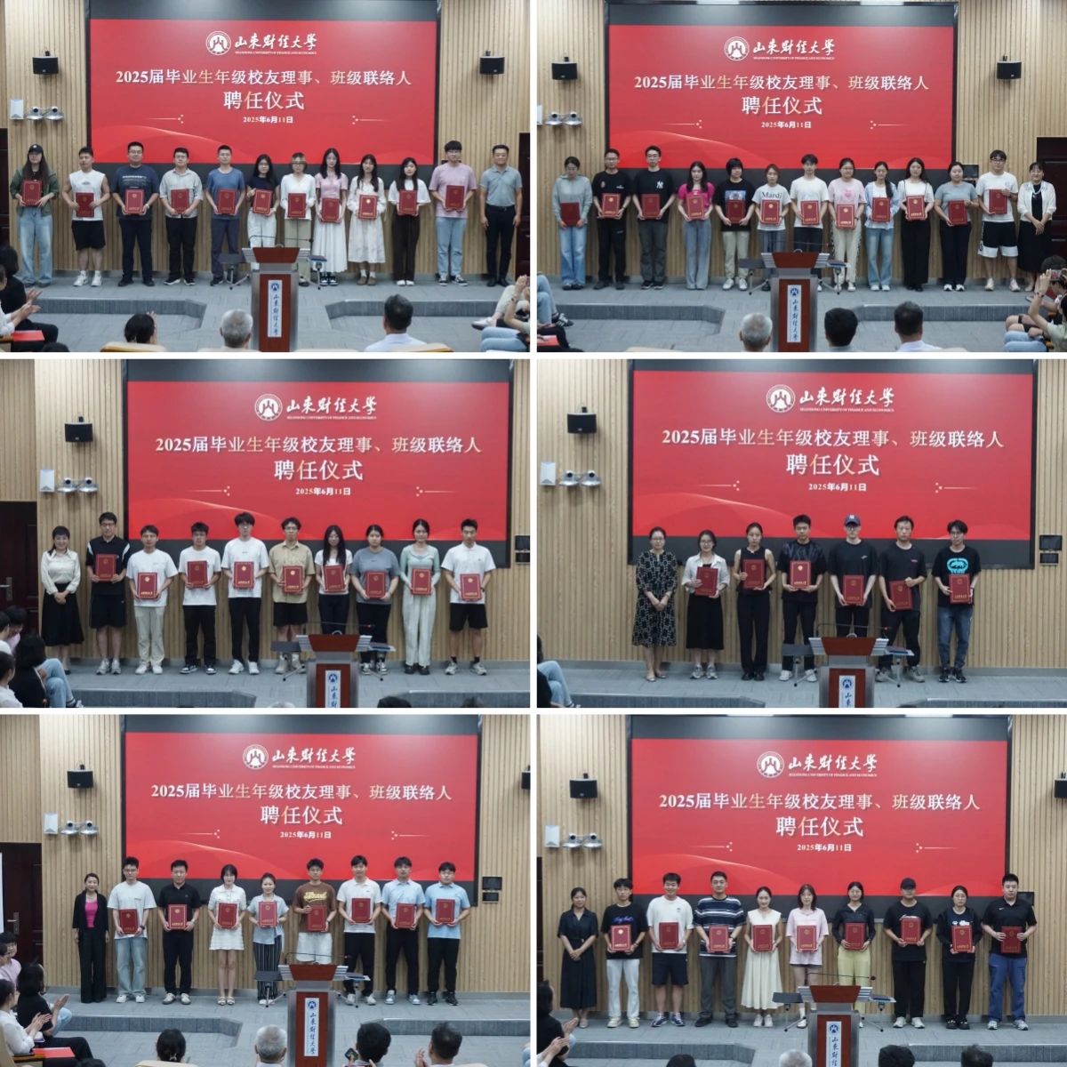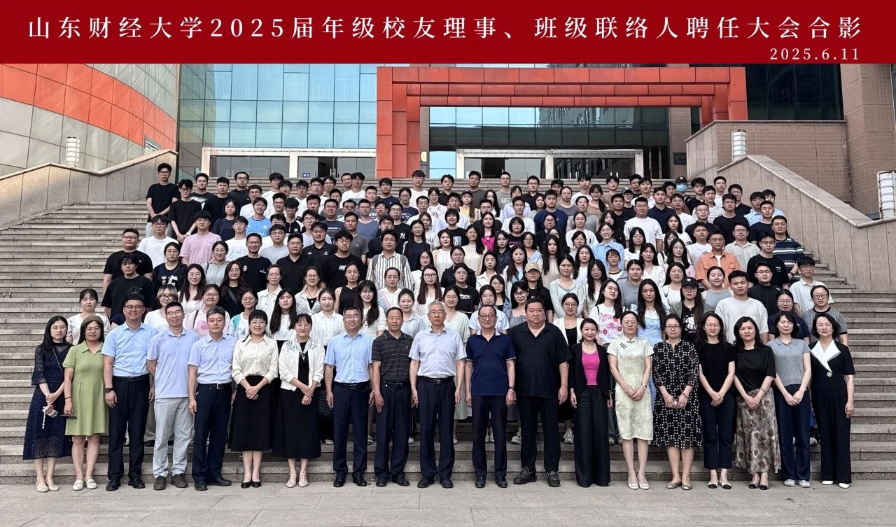 6月11日下午,山东财经大学2025届毕业生年级校友理事、班级联络人聘任仪式在燕山校区隆重举行。副校长张新出席仪式并讲话,年级校友理事、班级联络人代表近160人参加活动。仪式由合作发展处副处长何珅主持。