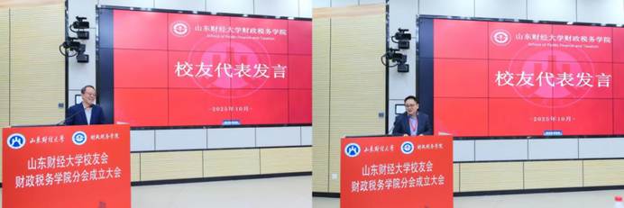 10月19日,山东财经大学校友会财政税务学院分会成立大会在舜耕校区举行。副校长张新出席并讲话,来自全国各地的120余名校友代表、学院师生代表参加,会议由财政税务学院党委书记石伟主持。