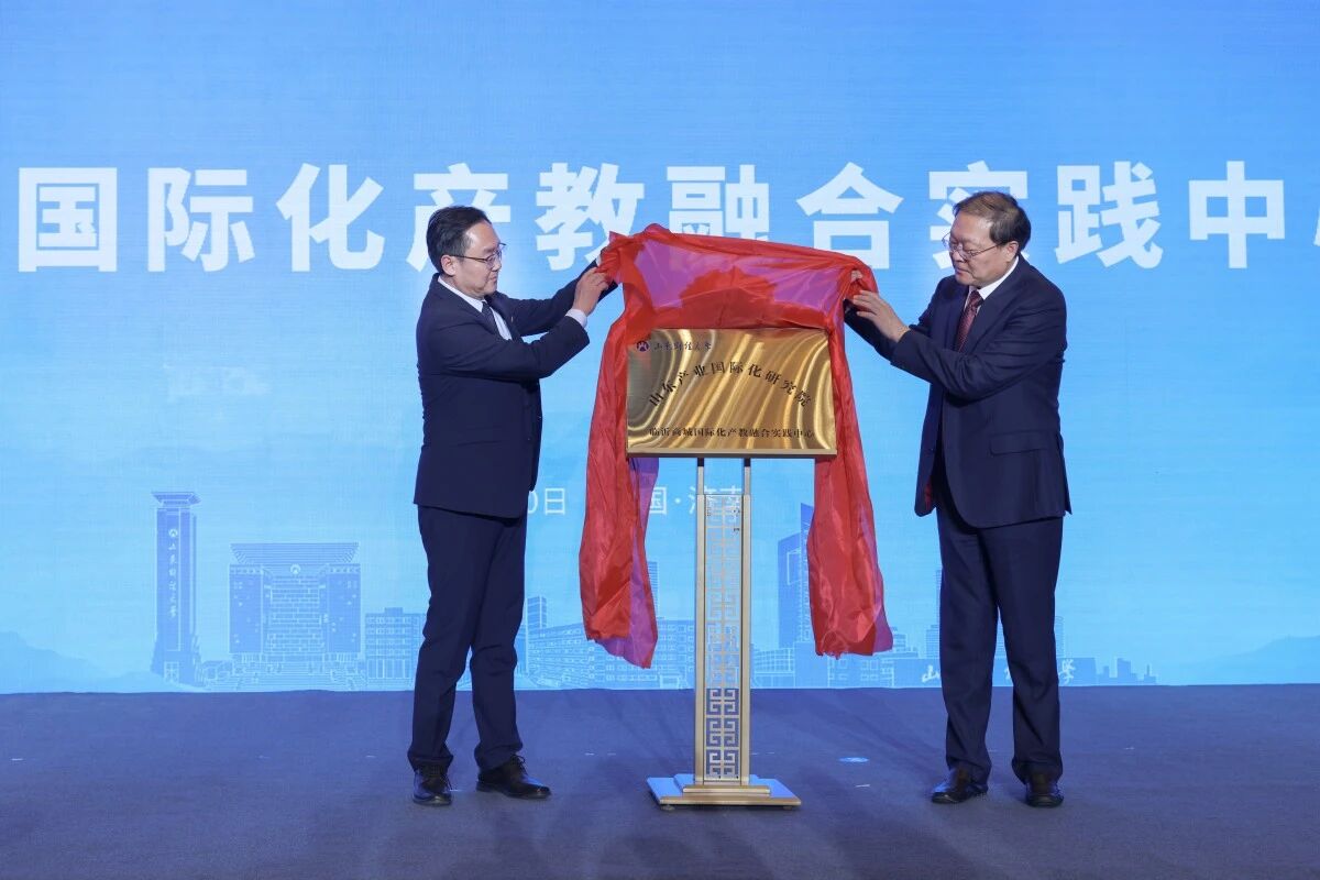 王敬政、孙德士代表双方签署战略合作协议,并共同为“临沂商城国际化产教融合实践中心”揭牌。
